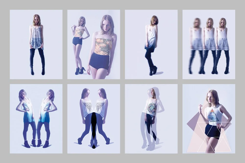 For the lookbook, I drew inspiration from AQ/AQ and Helmut Lang’s art direction – minimal, structural, with sharp editing and atmospheric effects. We organised a photoshoot, which I art directed and styled, before I edited the raw files to create images inspired by minimalism, nature, and the tension between clarity and distortion. I spent hours retouching the images and experimenting with Photoshop blend modes to produce the clean yet ethereal results I envisioned.